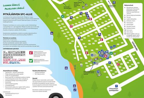 Toimistolta saa myös lainaan kävelysauvoja ja fribakiekkoja. Lapsille löytyy runsaasti aktiviteetteja.