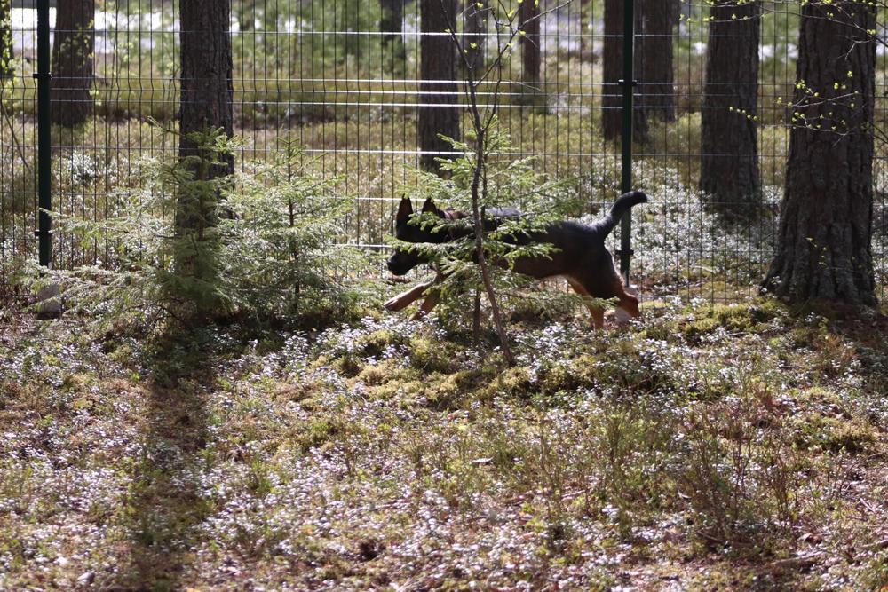 Koirille tarjotaan helteellä helpotusta sekä vapaana ne voivat juoksennella alueen omassa koirapuistossa.